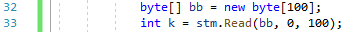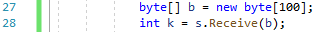 Burada gelecek veriye göre bir byte dizisi tanımlanır ve veri bu byte dizisine aktarılır. k isimli değişkene ise gelen verinin byte uzunluğu aktarılır.