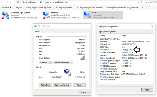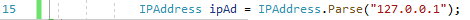 127.0.0.1 adresi tüm bilgisayarlar için varsayılan ip adresidir. Eğer sunucu ve istemci aynı makinada çalıştırılacaksa bu ip adresini kullanabilirsiniz. Eğer sunucu ve istemci farklı bilgisayarlarda çalışacaksa ağ üzerindeki gerçek ip adresini kullanmak gerekir. Ağ üzerindeki IP adresi ağ bağdaştırıcısının özelliklerine bakılarak öğrenilebilir.
