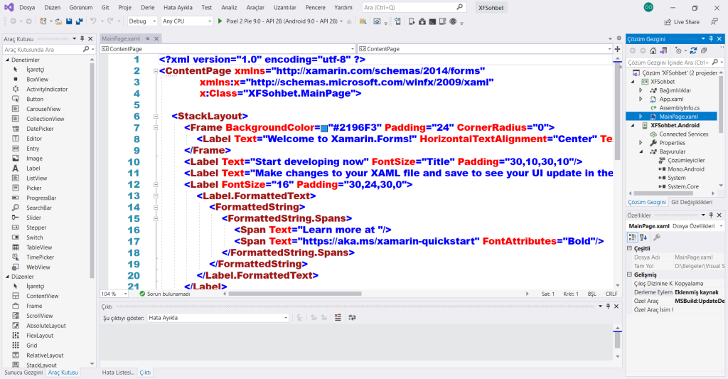 MainPage.xaml dosyası uygulamızın arayüzünü oluşturacak kodları içerecektir.
